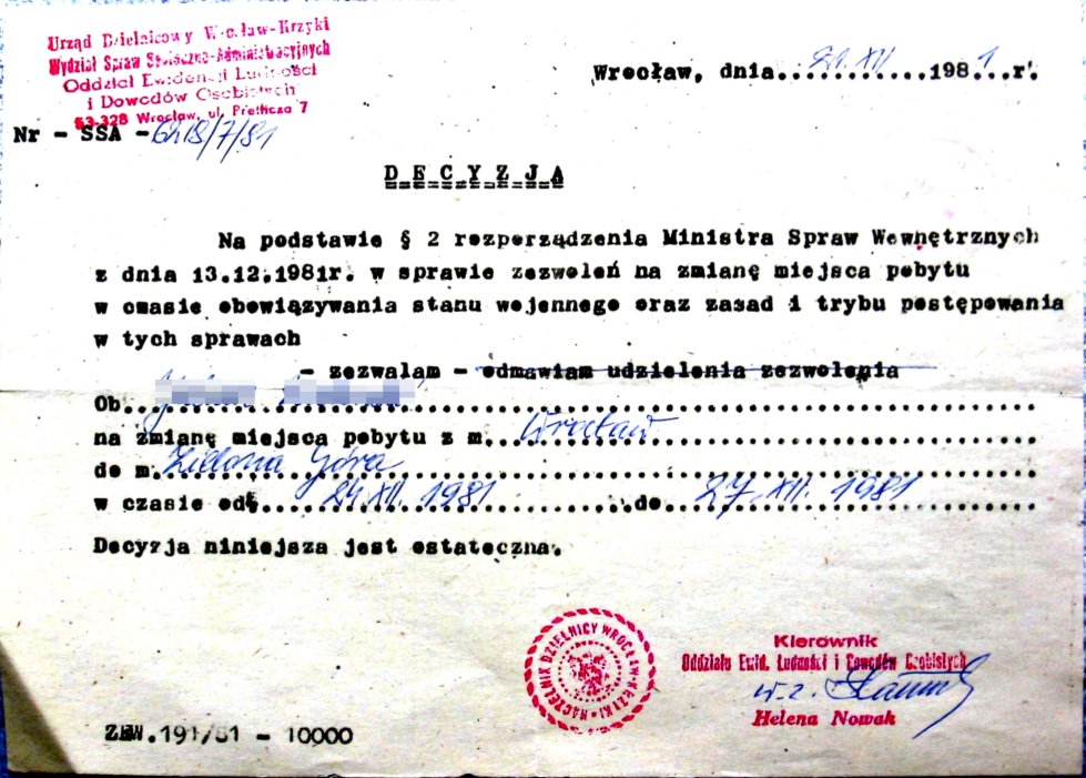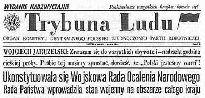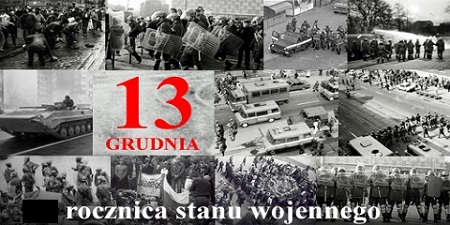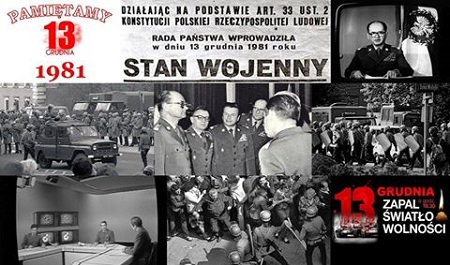 To już 44. rocznica wprowadzenia stanu wojennego. Trwał 586 dni. 13. XII.1981 zamknięto granice i lotniska, redakcje i rozgłośnie, zawieszono działalność związków, organizacji i stowarzyszeń, wprowadzono godzinę milicyjną oraz zakaz opuszczania miejsca zamieszkania, wprowadzono przepustki, nie działały telefony, internowano, aresztowano, skazano cały naród, byli zabici i ranni. Zgasła jutrzenka swobody. Polski orzeł znowu znalazł się w klatce. Niestety, jest tam nadal. Tyle, że wtedy była ona sowiecka – teraz jest brukselska… . I nie zmienią tego msze i marsze, pikiety i koncerty. Tyle już było zrywów przegranych, szans zmarnowanych, grzechów zaniechań. Dobrze się nam żyje w zniewoleniu i zakłamaniu, konformizmie i koniunkturalizmie, boimy się zmian, brakuje nam odwagi i determinacji. Bóg – Honor – Ojczyzna ciągle w odwrocie.