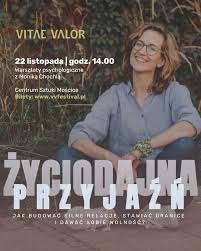 W tym roku zaprosiliśmy po raz drugi panią Monikę Chochlę, która poprowadzi warsztaty psychologiczno-rozwojowe w sobotę 22 listopada pod znamiennym tytułem “Życiodajna przyjaźń”. Z Panią Moniką spotkamy się również w tym dniu wieczorem w bloku “Kino i Wino” gdzie porozmawiamy z widzami o Przyjaźni w kontekście oglądanych filmów i spotkań.