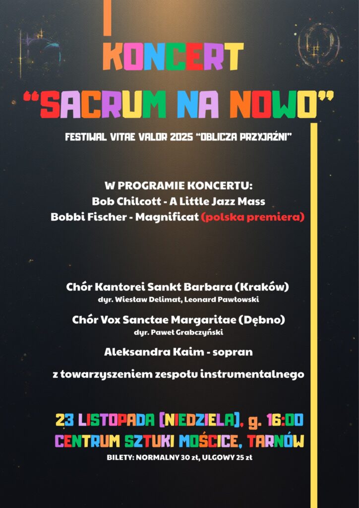 Z kolei finał festiwalu – niedziela, 23 listopada – będzie prawdziwą muzyczną ucztą. Na scenie Centrum Sztuki Mościce wystąpi ponad 70 chórzystów: Kantorei Sankt Barbara z Krakowa oraz Vox Sanktae Margaritae z Dębna, którzy wykonają polską premierę utworu “Magnificat” Bobbiego Fischera oraz tarnowską premierę “A Little Jazz Mass” Boba Chilcotta.