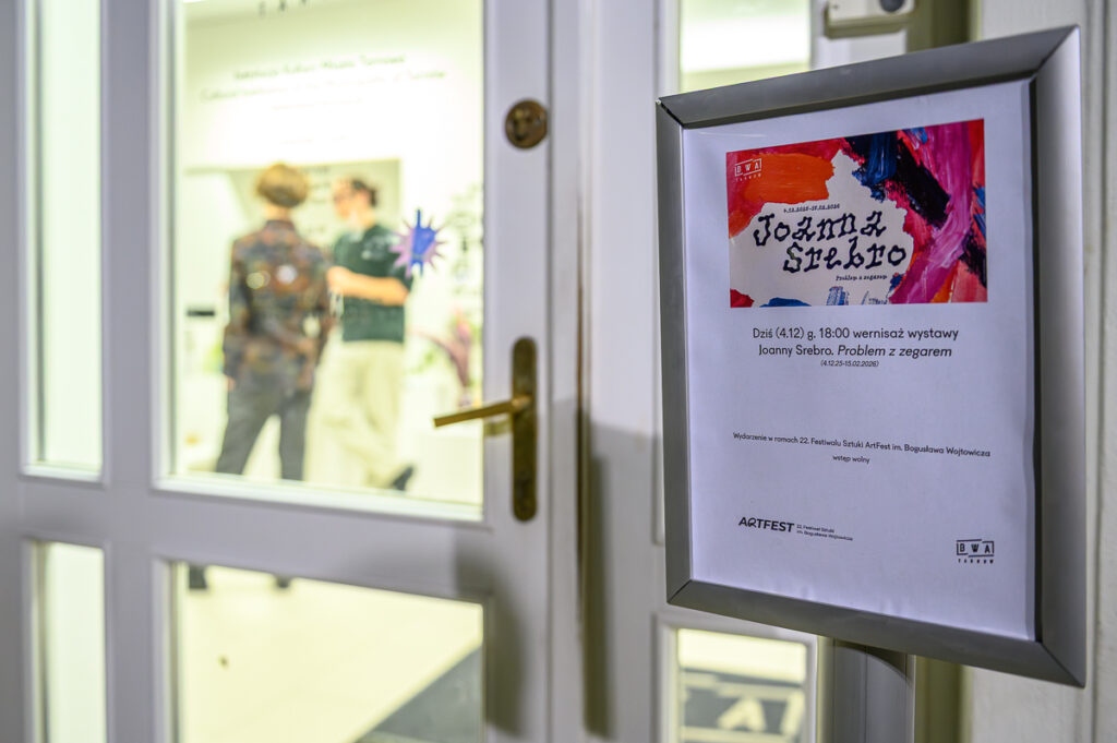 Problem z zegarem to przekrojowa retrospektywa dorobku malarskiej maestry Joanny Srebro. Ekspozycja ma na celu przedstawienie szerokiego wachlarza twórczości: rozmaitość ekspresji, technik i inspiracji w różnych okresach życia. Od wczesnych ekspresyjnych abstrakcji, przez nieoczywistą figurację, po tematykę eschatologiczną i cykle tematyczne: zapraszamy do doświadczenia świata, jakim widziała go Joanna Srebro.