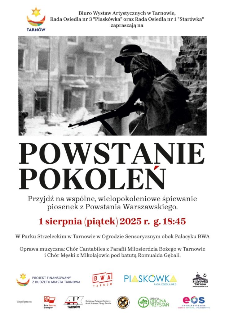1 sierpnia 1944 r. o godz.17, w tzw. godzinie „W”, na mocy rozkazu komendanta głównego Armii Krajowej, gen. Tadeusza Komorowskiego „Bora” rozpoczęło się powstanie warszawskie. Zryw miał na celu wyzwolenie stolicy spod niemieckiej okupacji przed wkroczeniem do niej Armii Czerwonej. W akcji „Burza” na ziemi tarnowskiej został zmobilizowany do działań bojowo – dywersyjnych 16 Pułk Piechoty Ziemi Tarnowskiej AK I Batalion „Barbara” pod dowództwem kpt. dypl. Eugeniusza Borowskiego ps. „Leliwa”. Jednym z uczestników powstania był mgr inż. Henryk Ziemnicki – żołnierz AK, pseudonim „Olbromski”, dowódca kompanii, a po wojnie organizator tarnowskiego NOT i wieloletni prezes oddziału SEP. Powstanie planowane na kilka dni, ostatecznie upadło 3 października, po 63 dniach walki. W jego wyniku zginęło około 18 tys. żołnierzy AK i do 180 tys. cywilów. Po kapitulacji Warszawa została doszczętnie zniszczona przez Niemców. W hołdzie bohaterom tamtych dni w całym kraju, także w Tarnowie, o godz. 17 zawyją syreny, będzie msza św., zapłoną znicze, złożone zostaną wieńce i kwiaty. Będzie powstańczy koncert. Jak co roku…