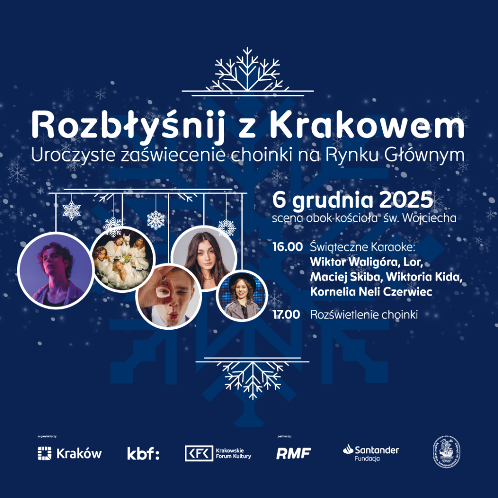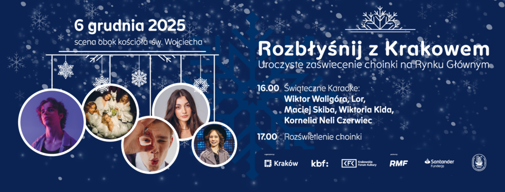 Kraków – jak co roku – zaprasza mieszkańców i gości miasta do wspólnego świętowania początku wyjątkowego, zimowego czasu. Już 6 grudnia, w Mikołajki, najważniejsze świąteczne drzewko w mieście rozświetli się na Rynku Głównym, inaugurując tegoroczny sezon bożonarodzeniowych atrakcji. Wydarzeniu towarzyszyć będzie muzyczny program pełen gwiazd pod hasłem ROZBŁYŚNIJ Z KRAKOWEM, a także wspólne śpiewanie największych świątecznych przebojów.