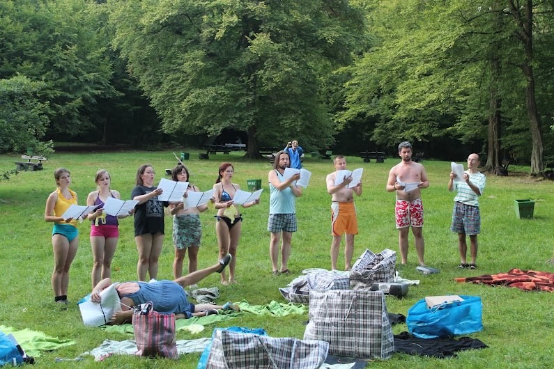Cezary Tomaszewski wielokrotnie wprowadzał muzykę ”pod strzechy” – Monteverdi był śpiewany w barze mlecznym a ORFEUSZ Glucka – w hali sportowej. Tym razem było inaczej: LIEDER IM FREIEN ZU SINGEN Feliksa Mendelssohna-Bartholdy’ego na chór a capella zostały – zgodnie z sugestią podsuniętą przez tytuł – zaśpiewane na świeżym powietrzu – i to w ruchu.