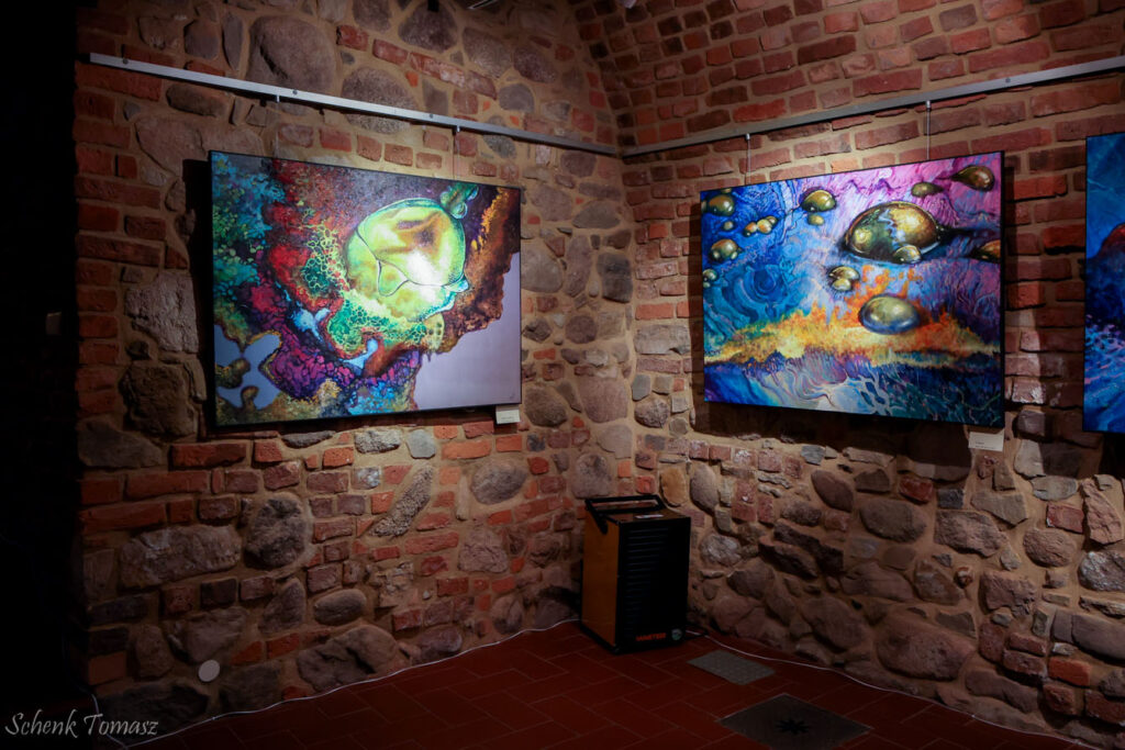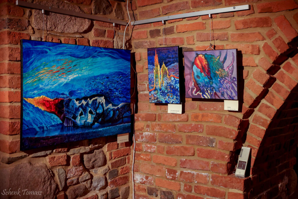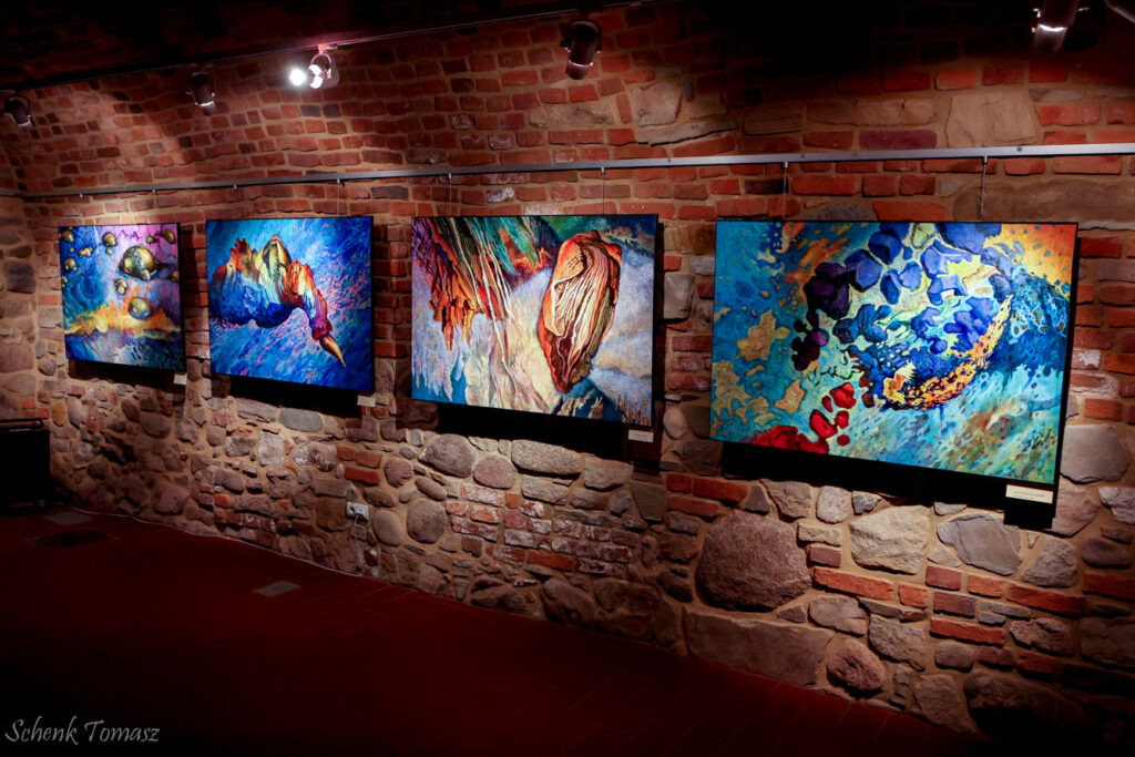 Kolory na obrazach niemal żyją, kształty – choć fantastyczne – wydają się znajome jak sny, które pamiętamy nie do końca. Wielkie formaty robią ogromne wrażenie: stojąc przed nimi, miałam poczucie, że jestem wciągana w ich głąb, w przestrzeń, która nie ma ramy, tylko swój własny rytm i energię. Różnorodność faktury sprawia, że prace działają nie tylko na wzrok – niemal odczuwa się je fizycznie, jakby miały ciężar i miękkość, ciszę i dźwięk.